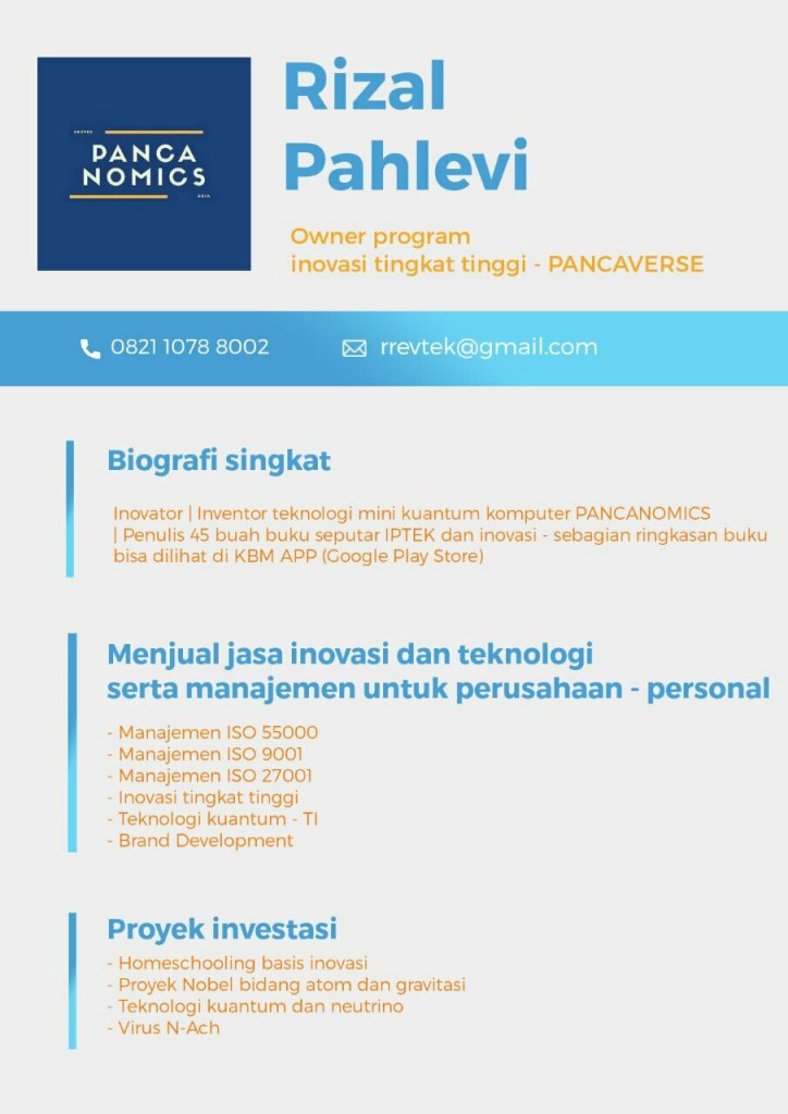 Indonesia wajib memiliki teknologi ini, karena itu Indonesia wajib memanfaatkan hasil inovasi tingkat tinggi yang sudah tersedia dalam bentuk teknologi mini kuantum komputer PANCANOMICS.